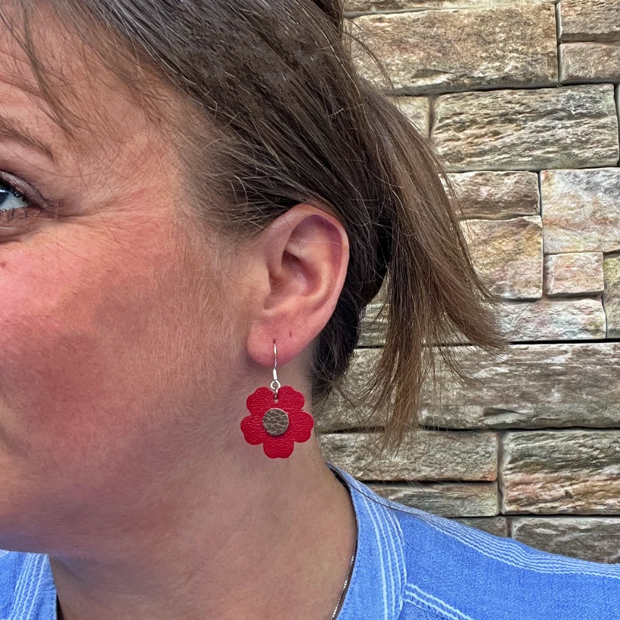 Osez la couleur avec ces boucles d’oreilles fleur en cuir, à la fois pétillantes et élégantes. 🌸