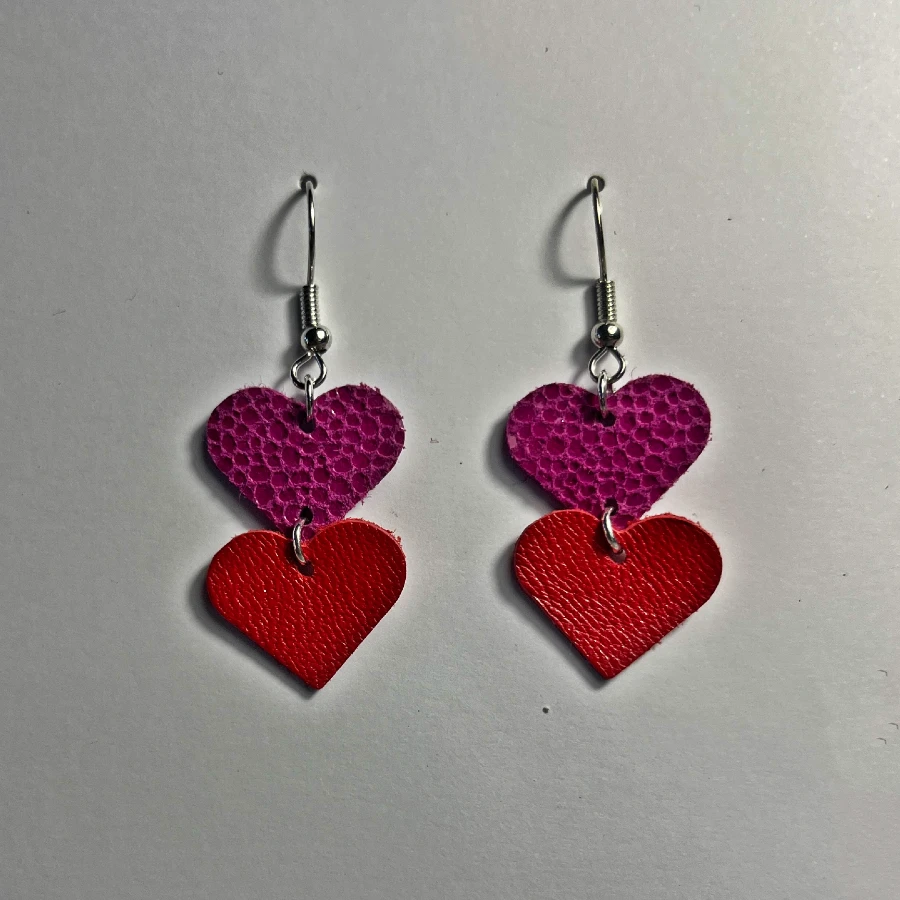 Boucles d’oreilles en cuir de chèvre et de veau avec une monture en Métal argenté.