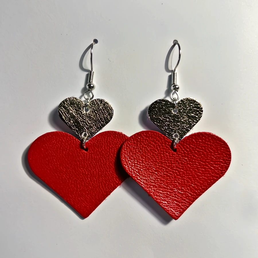Boucles d’oreilles en cuir de chèvre et de veau avec une monture en Métal argenté.
