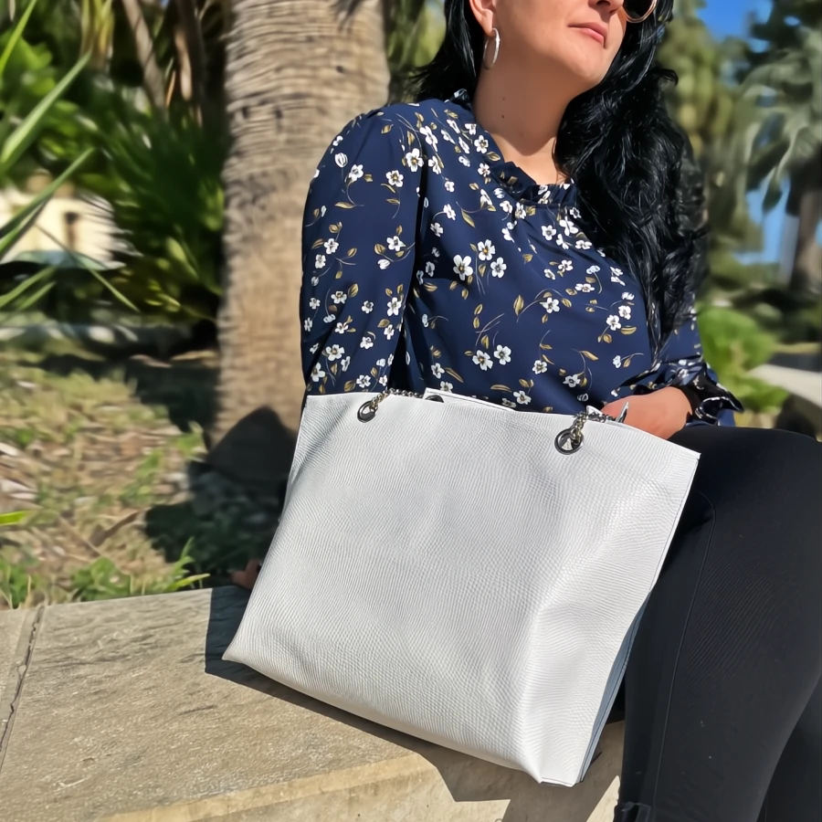 Le grand cabas en cuir est le compagnon parfait pour vous suivre du matin au soir. Que ce soit pour une journée de travail intense, une virée shopping entre amies, ou une escapade en ville, ce sac répondra à tous vos besoins. Grâce à sa grande capacité de rangement, il vous permet de transporter vos essentiels en toute élégance.