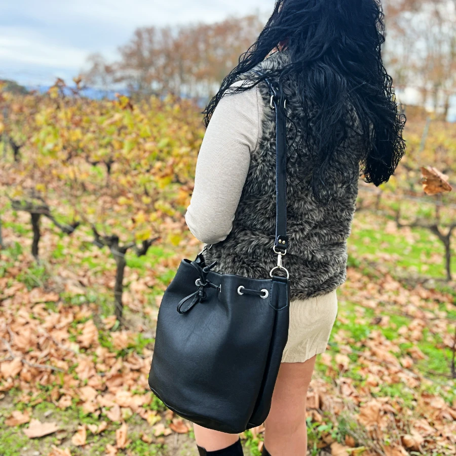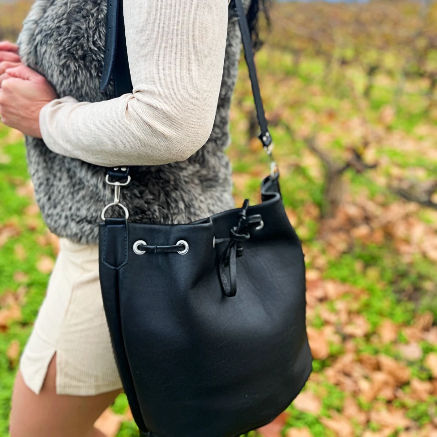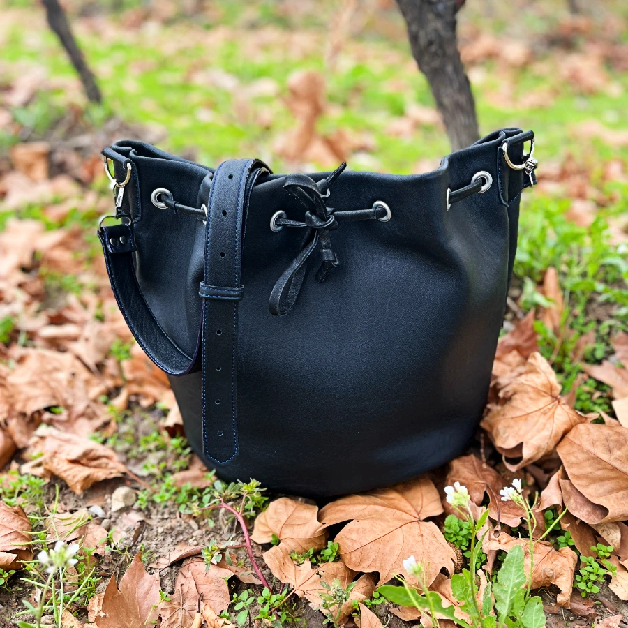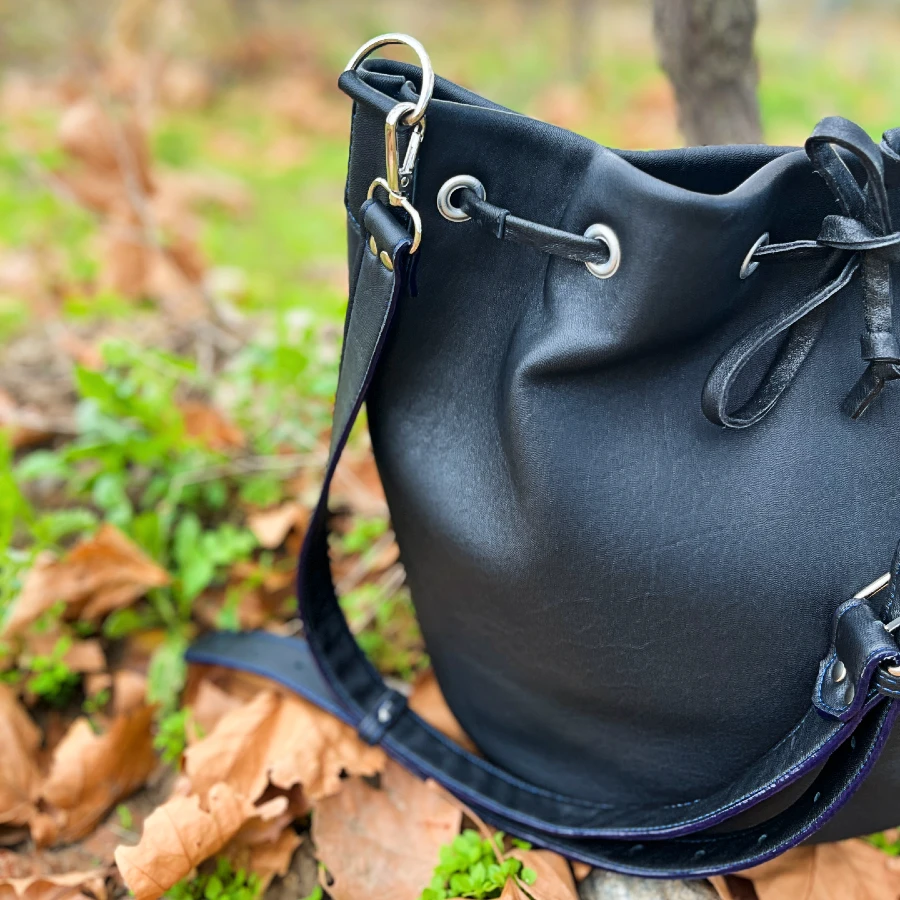 Découvrez le sac seau grand modèle, une pièce élégante et pleine de caractère, entièrement faite à la main dans mon atelier. Chic, spacieux et résolument moderne, il allie caractère et fonctionnalité pour vous accompagner au quotidien.