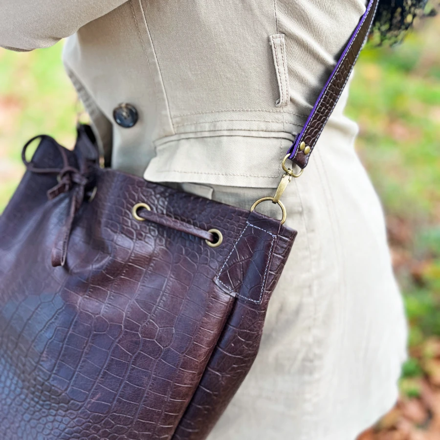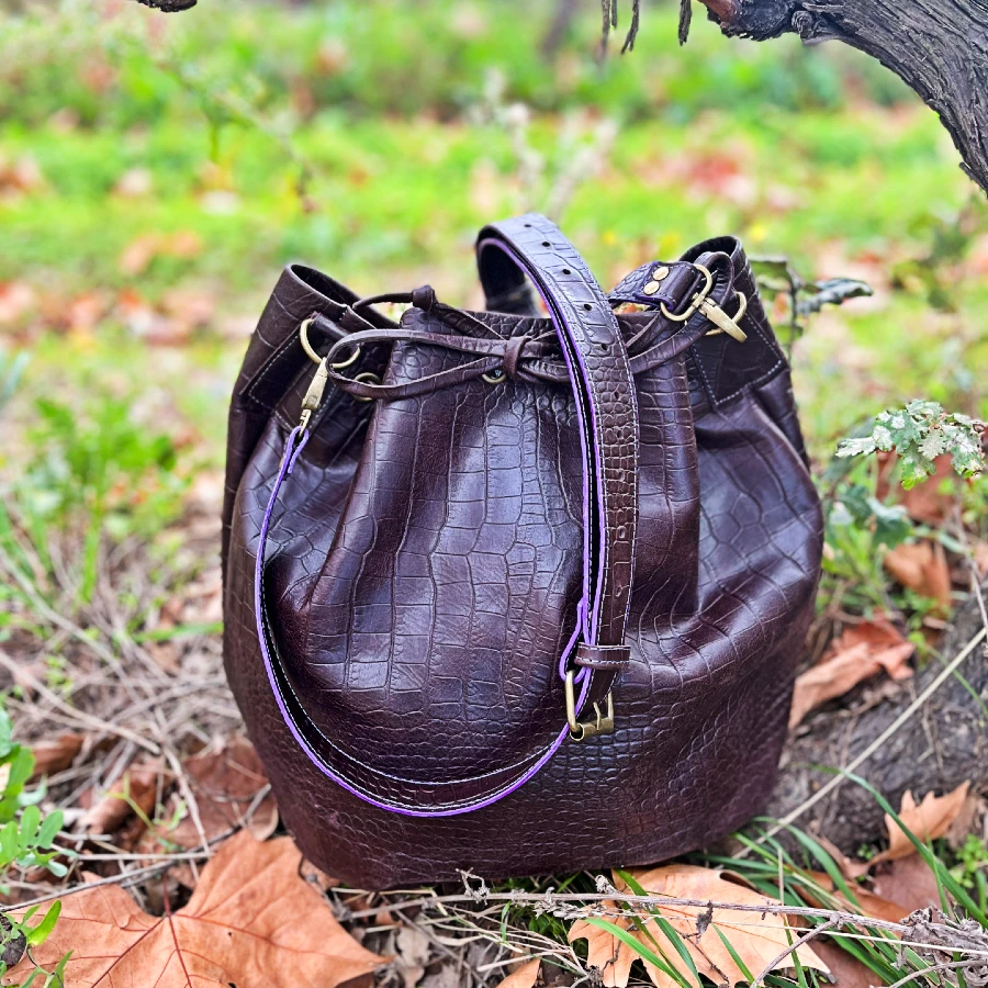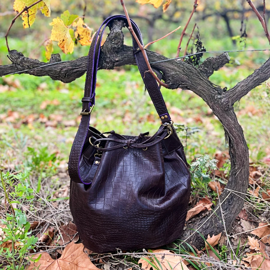 Découvrez le sac seau grand modèle, une pièce élégante et pleine de caractère, entièrement faite à la main dans mon atelier. Chic, spacieux et résolument moderne, il allie caractère et fonctionnalité pour vous accompagner au quotidien.