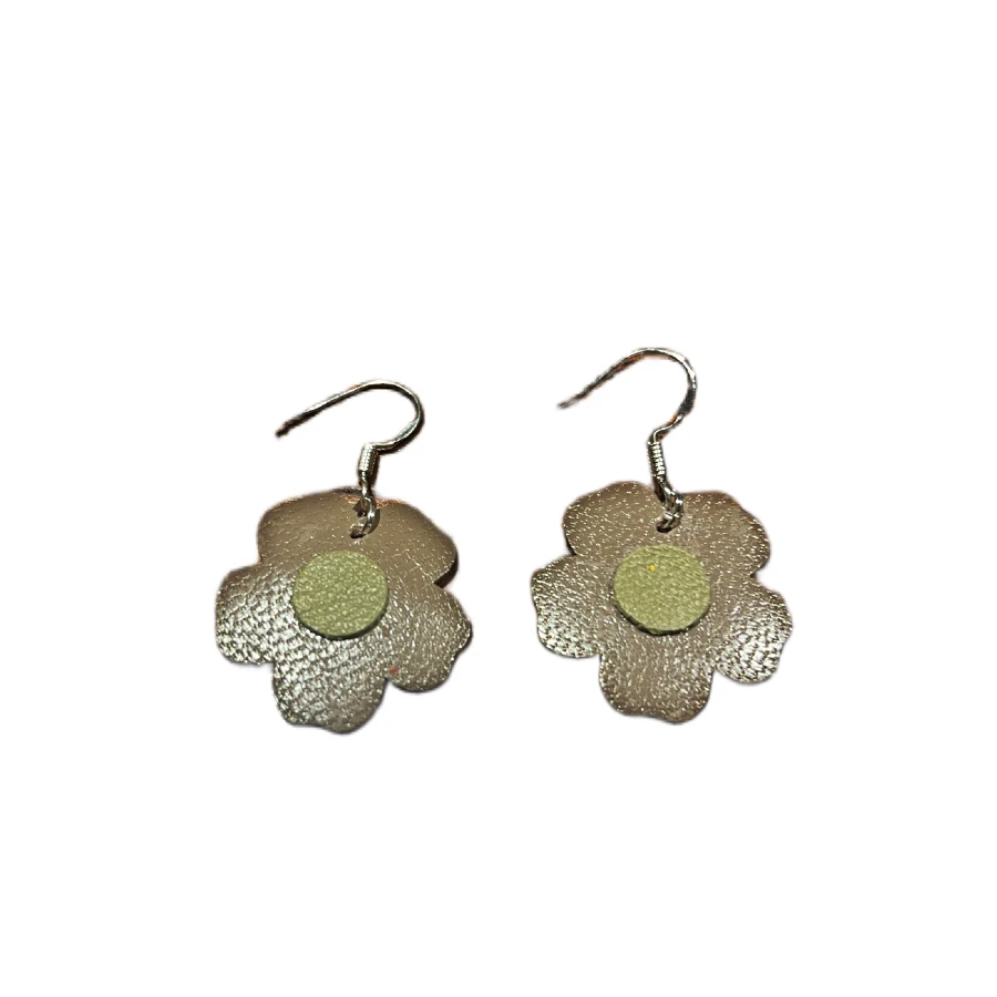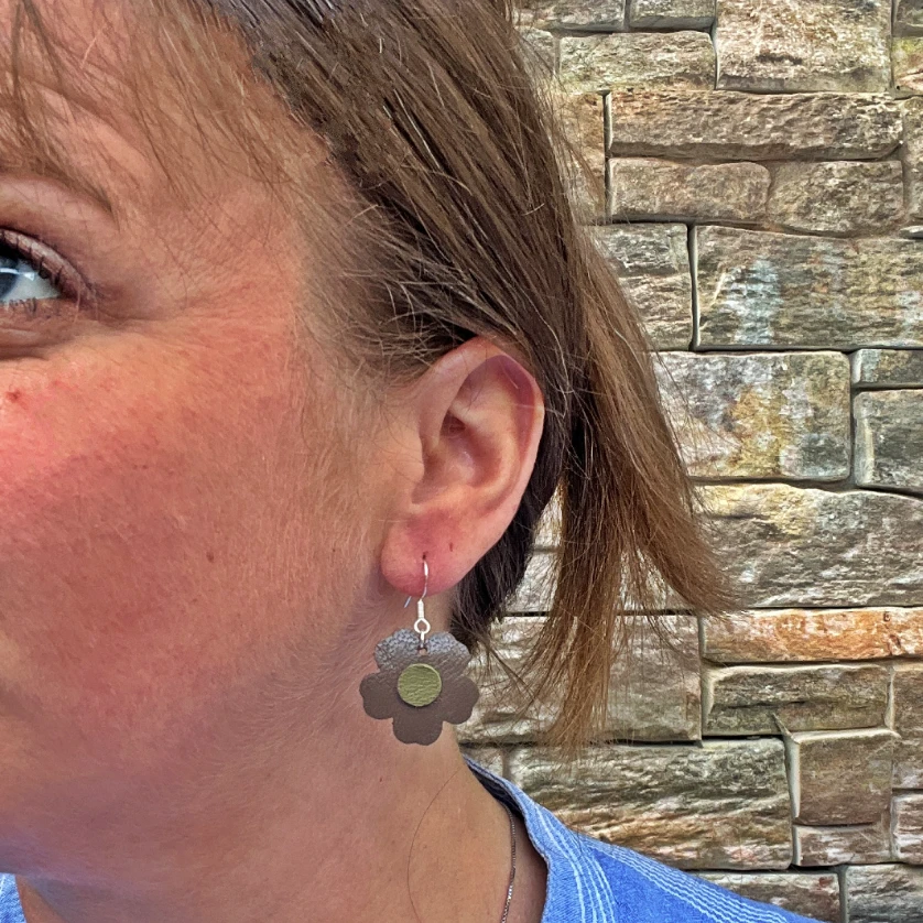 Boucles d’Oreilles Fleur en Cuir – Marron & Kaki
