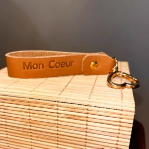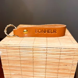 Porte-clé en cuir avec message, fait main en France. Petit accessoire artisanal, symbolique et durable.