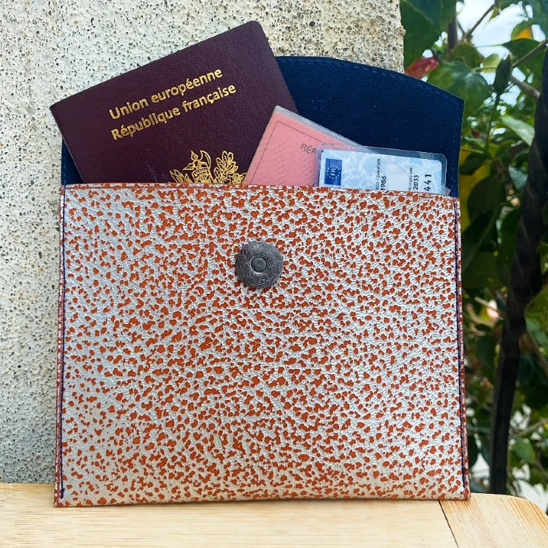 Nous vous proposons cette pochette en plusieurs teintes et matières. Vous pouvez ainsi choisir la version qui reflète le mieux votre style personnel. Chaque modèle est unique, entièrement fabriqué à la main pour garantir un savoir-faire artisanal d’exception.