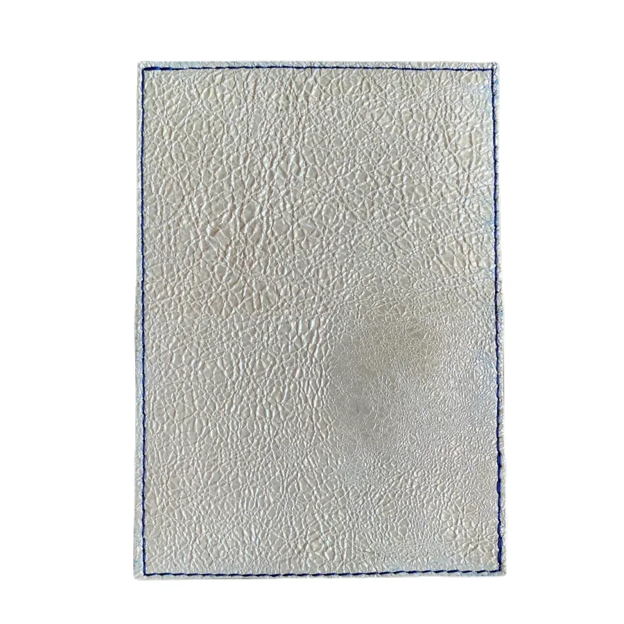 - Matériaux : Cuir de chèvre effet craquelé blanc nacré avec doublure microfibre alcantara bleue claire